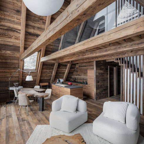 ll progetto si sviluppa seguendo le richieste di una coppia di professionisti amanti della montagna, per aiutarli ad ampliare e trasformare un rustico in un piccolo chalet sulle alture di Cesana Torinese, in Val di Susa.